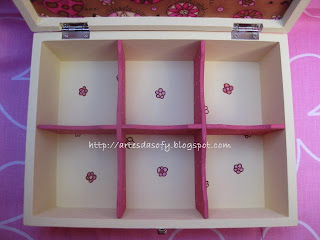 Hoje venho mostrar-vos uma caixa de chá que fiz para alguém que adora animais..este tecido continua a fazer as minhas delícias :) A tampa tem vidro, onde foi colada a palavra "chá" e a parte de baixo foi forrada com este tecido..depois levou umas bolinhas, uns tons rosa, umas flores e ficou assim:
